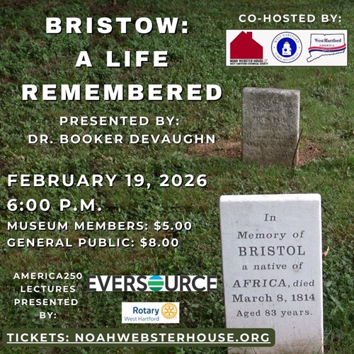 This program is co-hosted by the Noah Webster House & West Hartford Historical Society, West Hartford 250, and the West Hartford Town Historian.